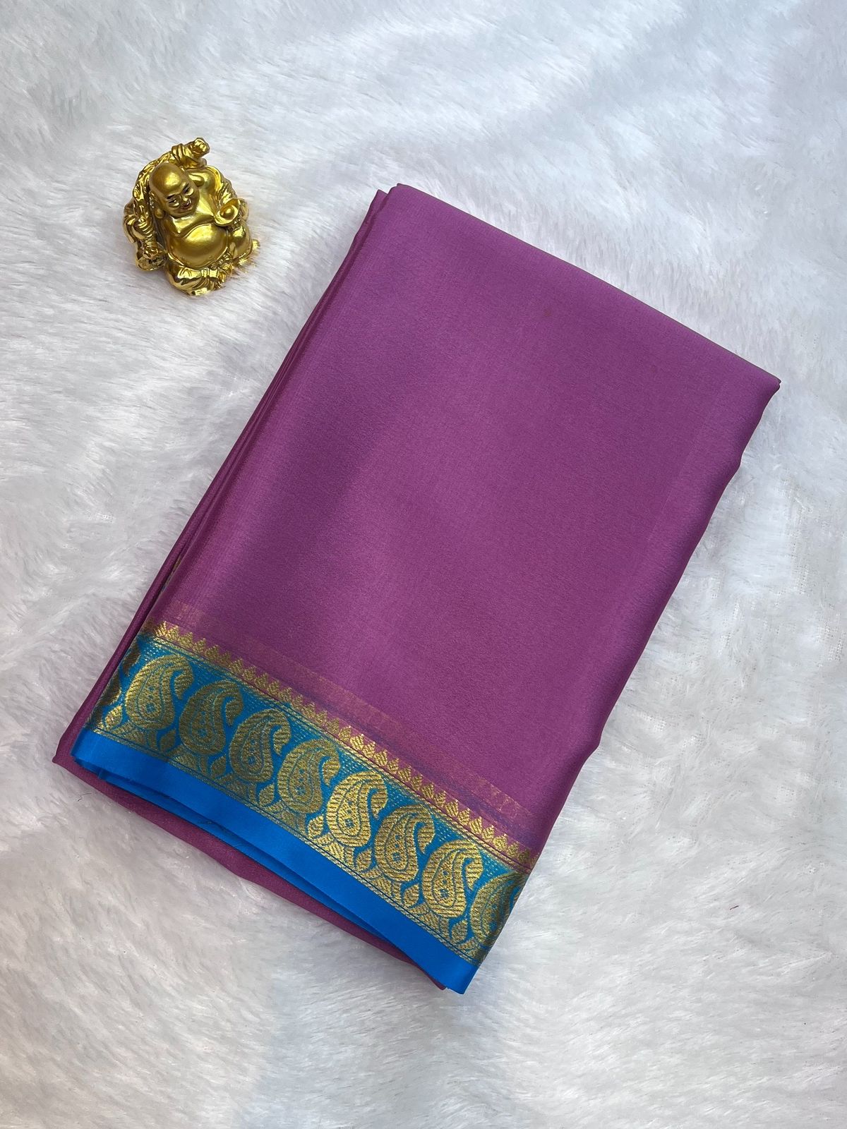 Mysore crape silk saree with Temple Border design (80 GSM)